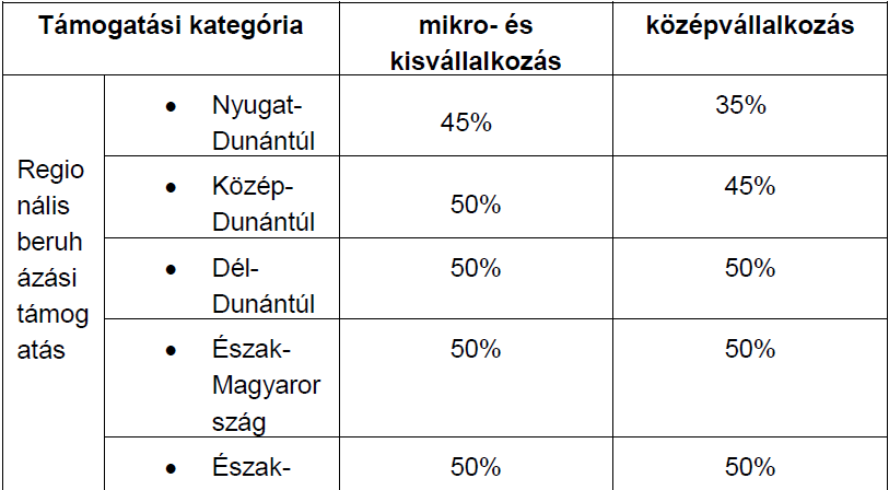 b) A vissza nem térítendő támogatás maximális mértéke az összes elszámolható költség maximum 35%-a lehet.